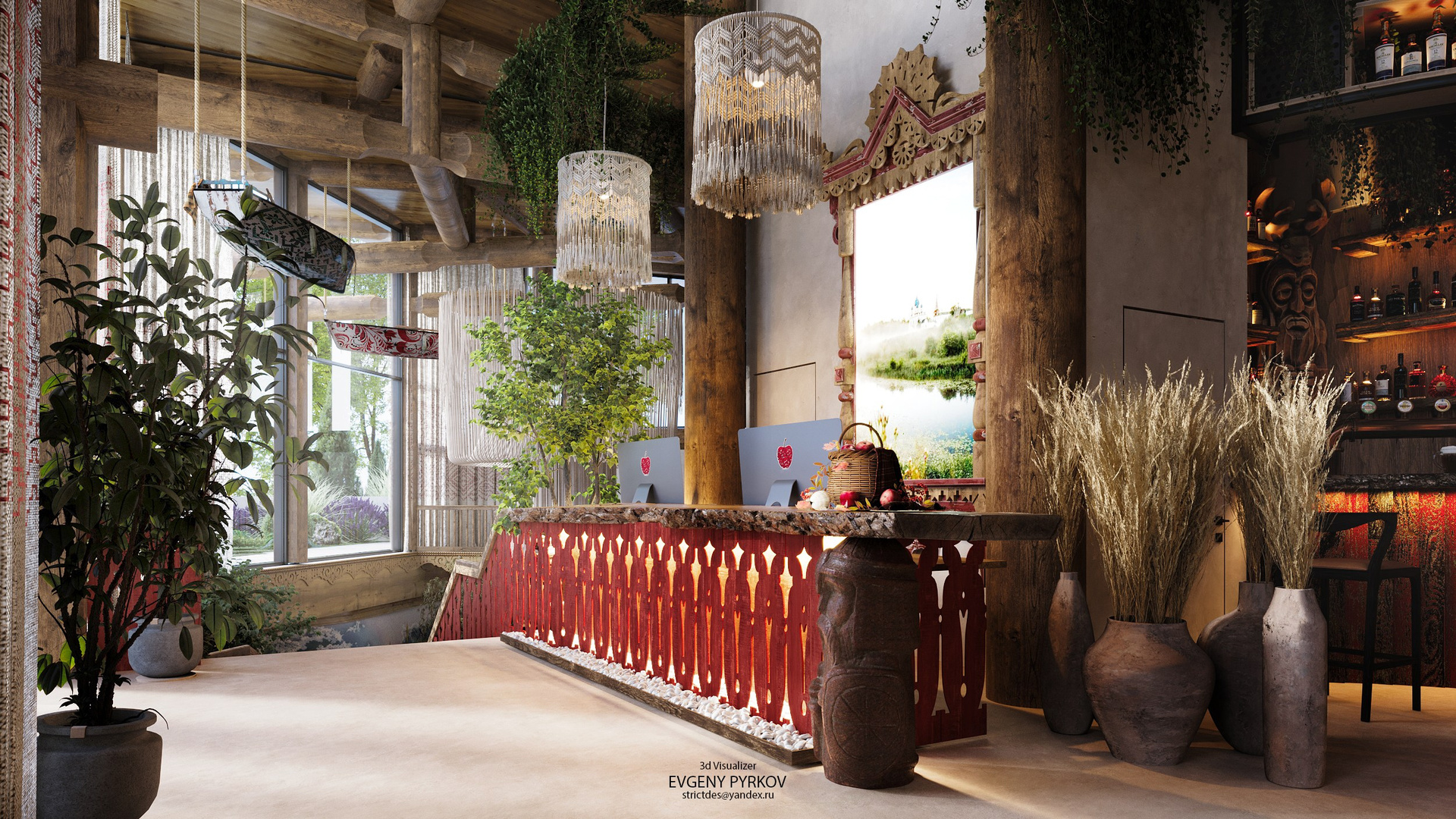 Каждый из них оформлен в своей стилистике, но выдержаны в русском стиле. Сказочный, поморский, шаманский, старообрядческий, кавказский — все с индивидулальным характером.